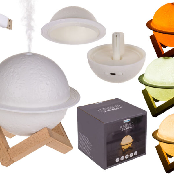 Υγραντήρας/διαχύτης λαδιού, σχήμα πλανήτη, ξύλινη σχάρα, 3 επ. φωτισμού & USB, 110ml, 13,8x10,5cm - B2b Best For - Life Philosophy