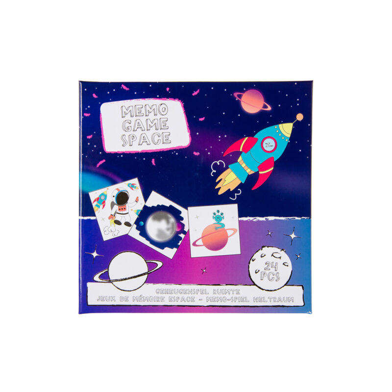 Παιχνίδι με κάρτες μνήμης με θέμα Διάστημα (Κάρτες 7*7 εκ-Κουτί 17*17*2,5 εκ)